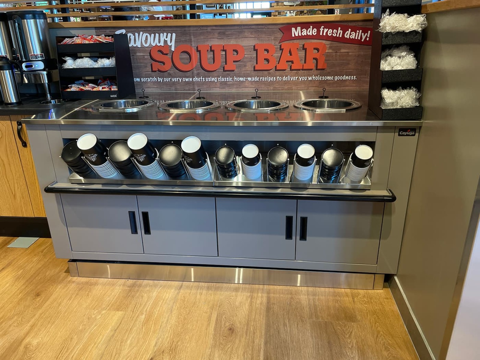 Designed to showcase soups, stews, and other hot sides, Cayuga’s soup bars offer the same efficient, waterless heating as our full-sized wells. And thanks to our modular system, these stations can be combined with cold wells or hot bars to build flexible, multi-temp setups in a single footprint.