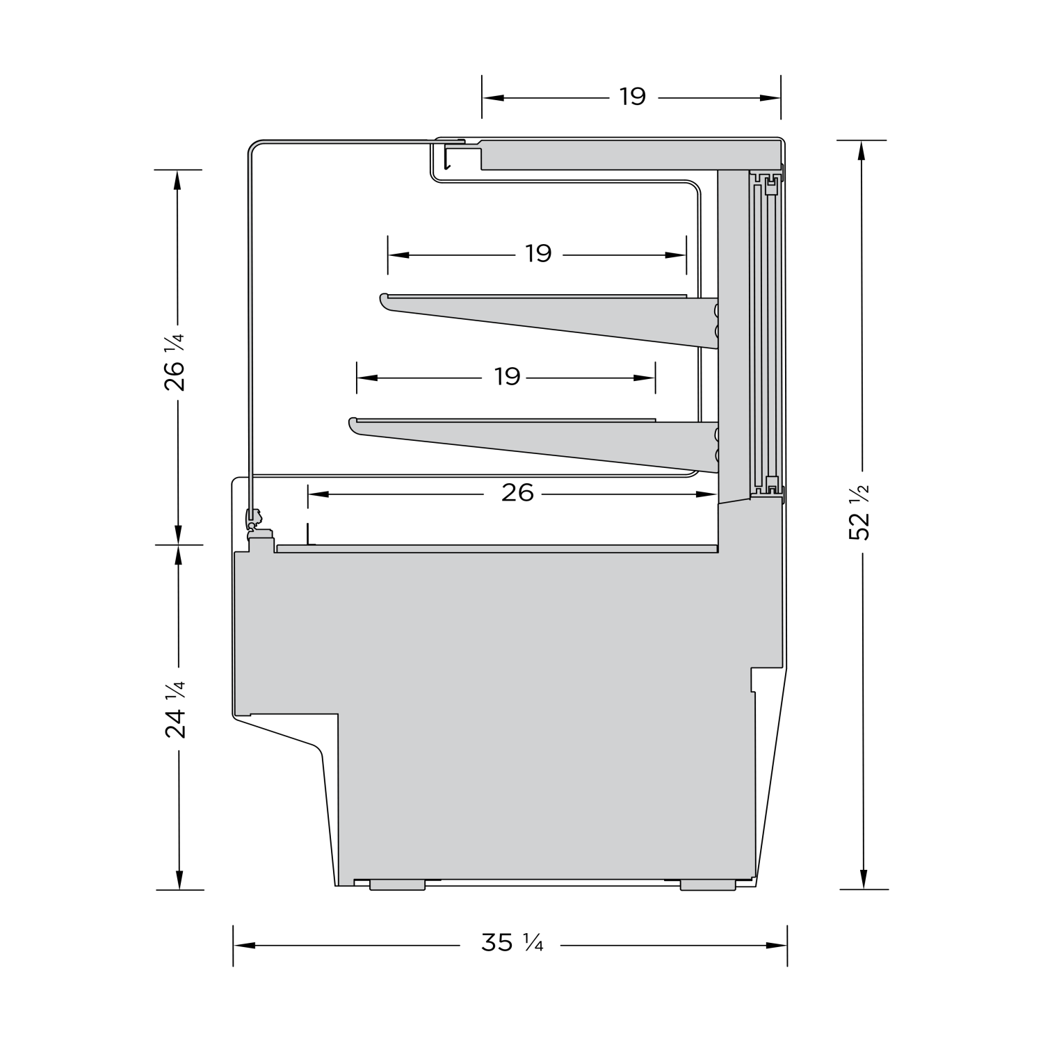 | SG-RH3S-48 | 49 ⅞”L x 31 ⅛"D x 52 ½"H | Square Glass Service Display |